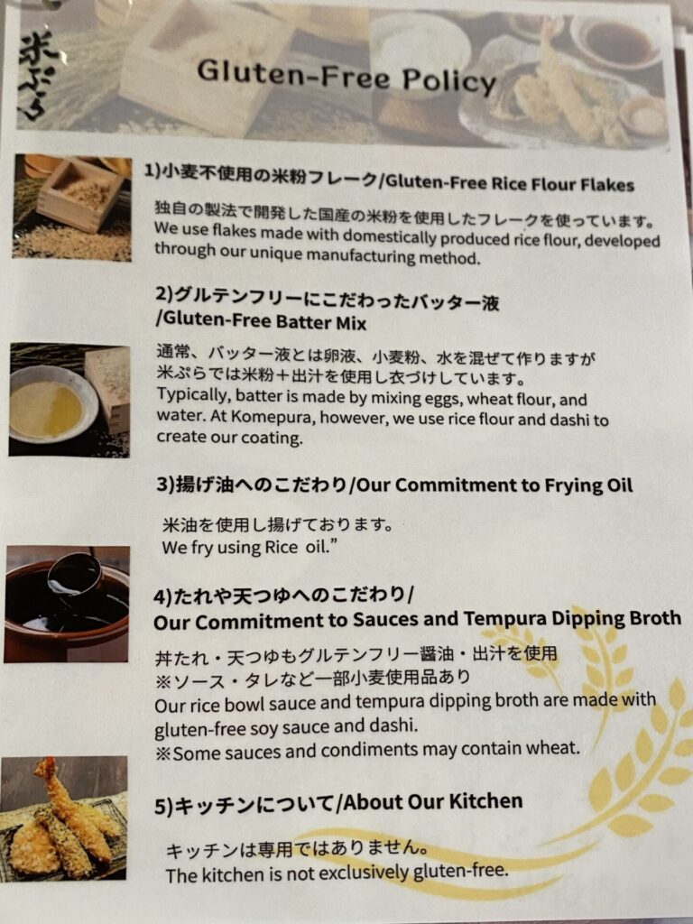 店内で小麦麺使用、グルテンフリーメニューあり、麺だけグルテンフリー麺に変更可